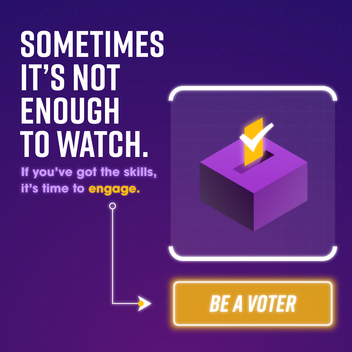 First, we wanted to make sure we were on the right track. Our agency ran a test where my creative team tried out a few different visual approaches: one was like the standard "let's get out and vote" ad, another was totally video game-style, and one was a mix of both.